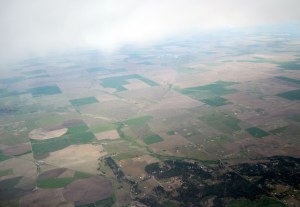 This is a view from the plane of Eastern Washington farmland on the flight from Spokane to Portland. I drove back and forth across his landscape many, many times back in the day. Brings back memories.
