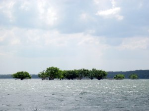 This is a shot at mile marker 44, a bunch of trees growing in the middle of the river — we know them as The Floating Hallalujah Trees of Lake Travis.