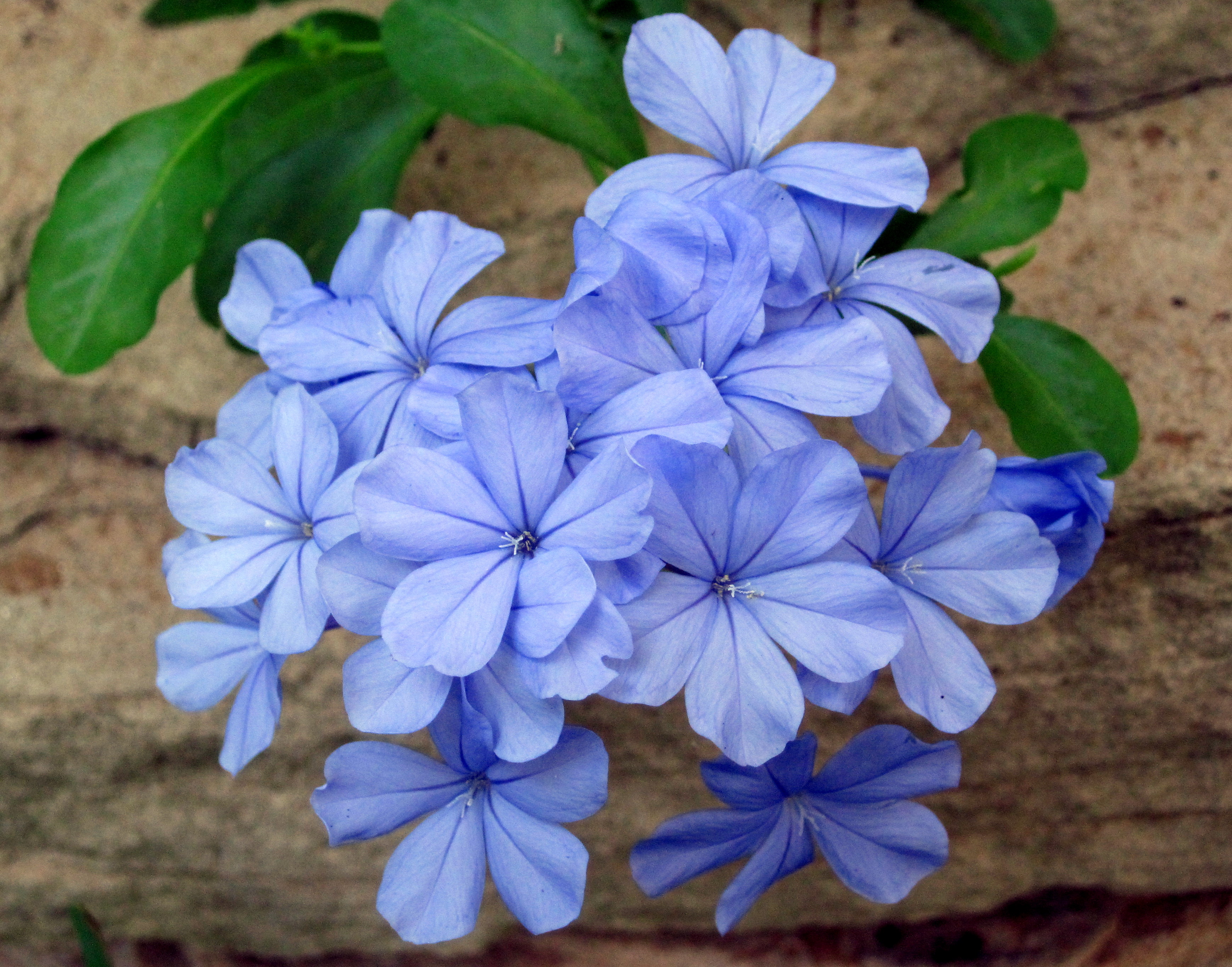 This is a shot of some blue plumbago that I planted a year or two ago. I like plumbago because of the pretty blue color, and how it contrasts with the orange flowers that are nearby.