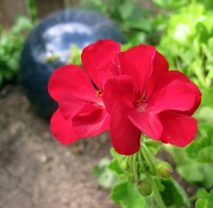 This is a shot of a geranium I planted in the bed this year — a pretty deep red.