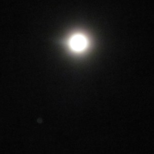 I flew to NY today for some meetings tomorrow and Friday. I got to my hotel right around midnight eastern time. I went outside to check out the Harvest Moon. It had just rained here and the sky was very hazy, but the moon was incredibly bright. The faint glimmer to the bottom left of the moon is Jupiter.