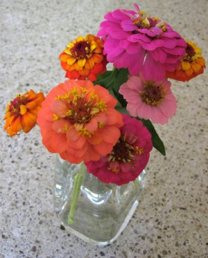 Oct 27, 2010 ...and more zinnies Monte brought in a nice bouquet of zinnias from the last planting today. Keep ’em comin’! It looks like Spring in the kitchen 🙂 Share on: Click to share on Facebook (Opens in new window) Facebook Click to share on X (Opens in new window) X Click to share on Pinterest (Opens in new window) Pinterest More Click to share on Tumblr (Opens in new window) Tumblr Click to email a link to a friend (Opens in new window) Email Click to share on Reddit (Opens in new window) Reddit Like Loading... Related