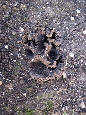 I think this is a raccoon pawprint, or at least something bigger than a squirrel.