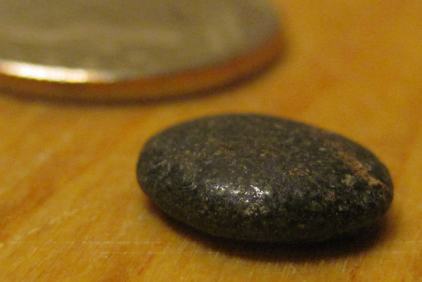 This little rock (that’s a dime in the background to get a sense of its size) was in a baggie on the kitchen counter this morning.