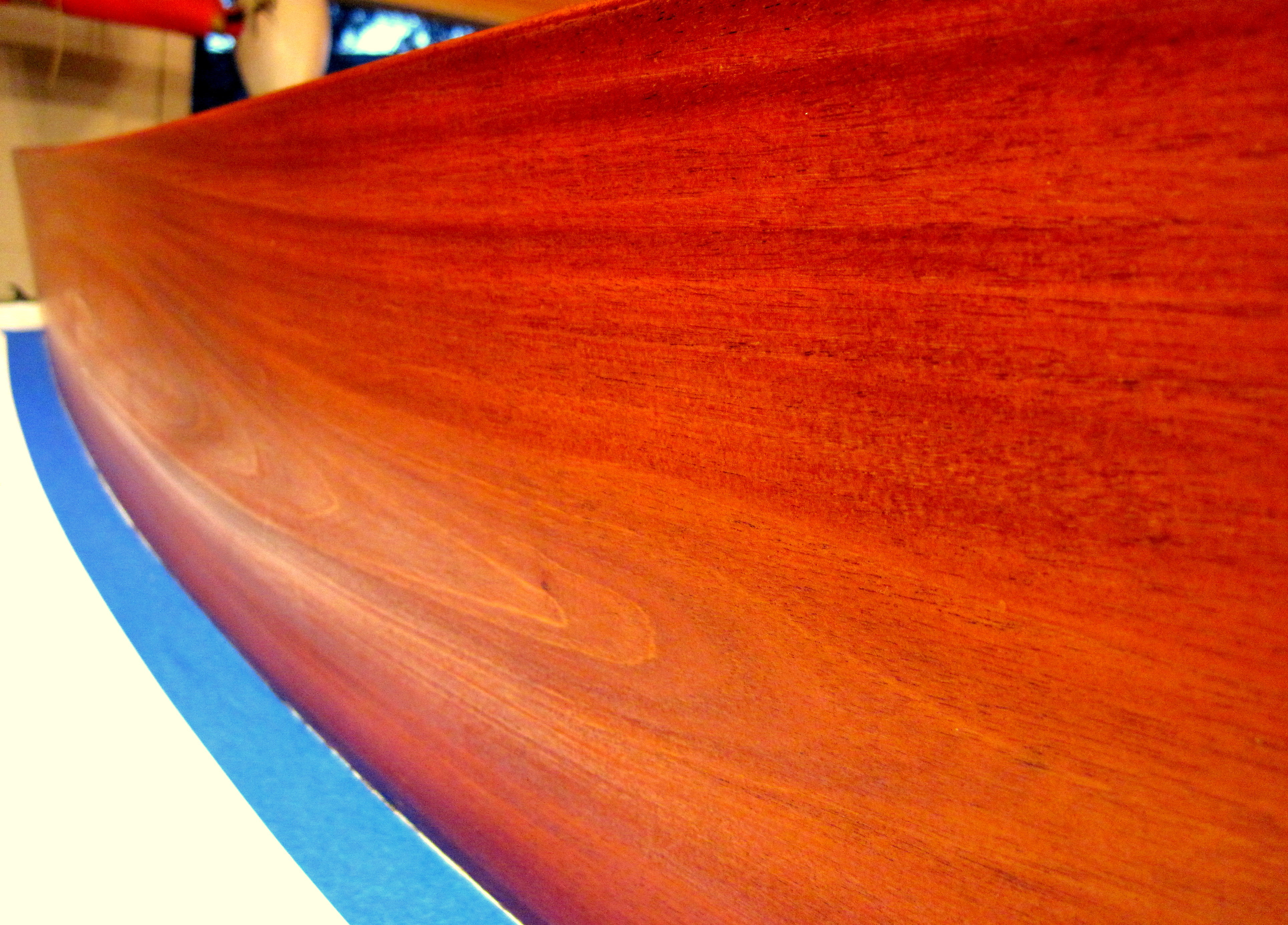 This is a shot from tonight – the wood is ready for varnish, taped and prepped. We’re looking forward to making progress this weekend. The mahogany brightwork looks beautiful and I can’t wait to see it with its first coats of new varnish.