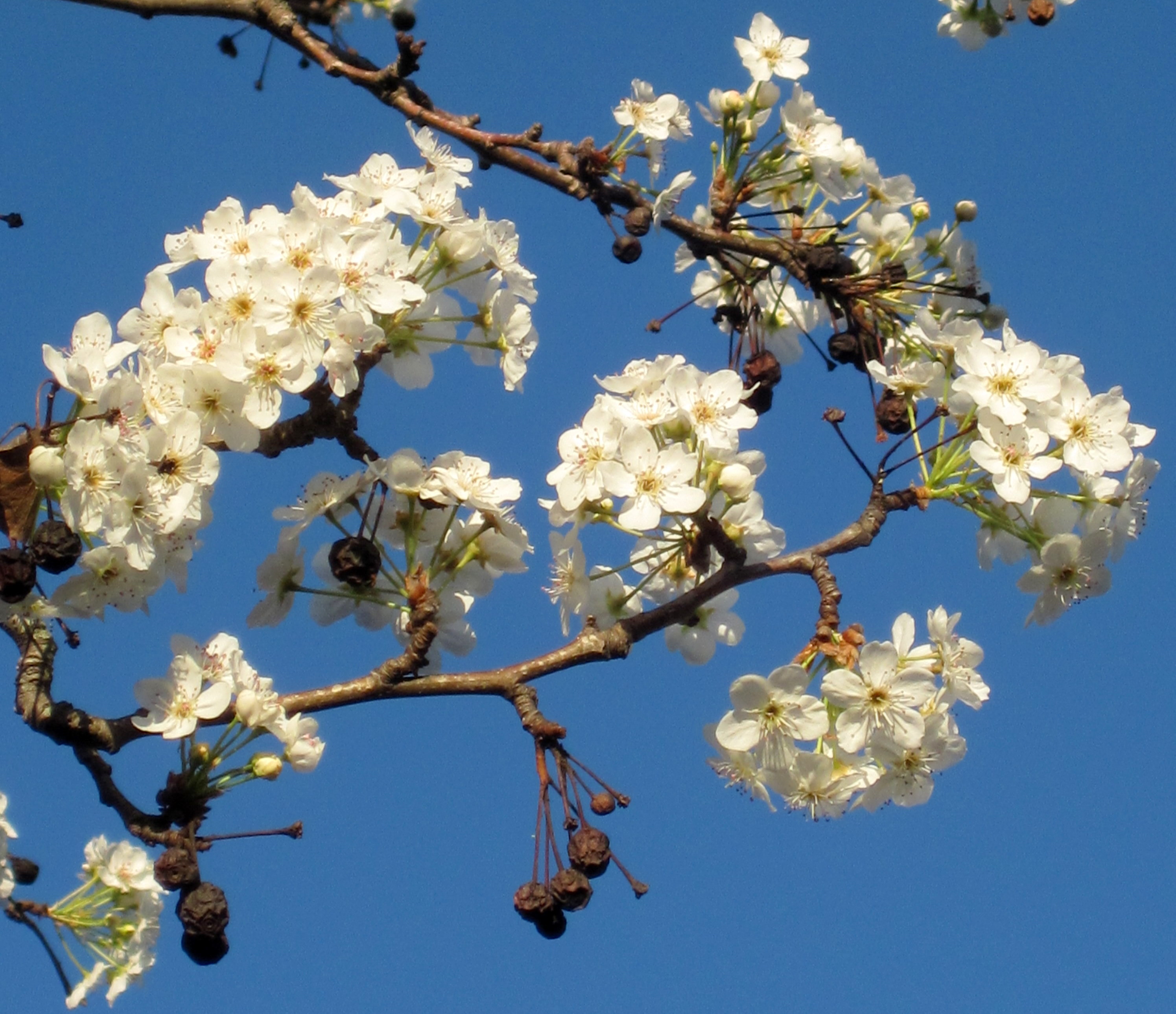 It’s funny, really. I looked out the front window today and saw that all of a sudden the ornamental pear tree out front had burst into bloom. I looked back through the photos I took last spring, because I recall taking a photo of the entire tree full of white flowers. It turns out I took that picture last year on the same day as today – March 9th.
