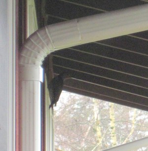 It’s been raining all week. This bird is obviously a fair-weather woodpecker because he prefers to do his work under the eaves where it’s dry.