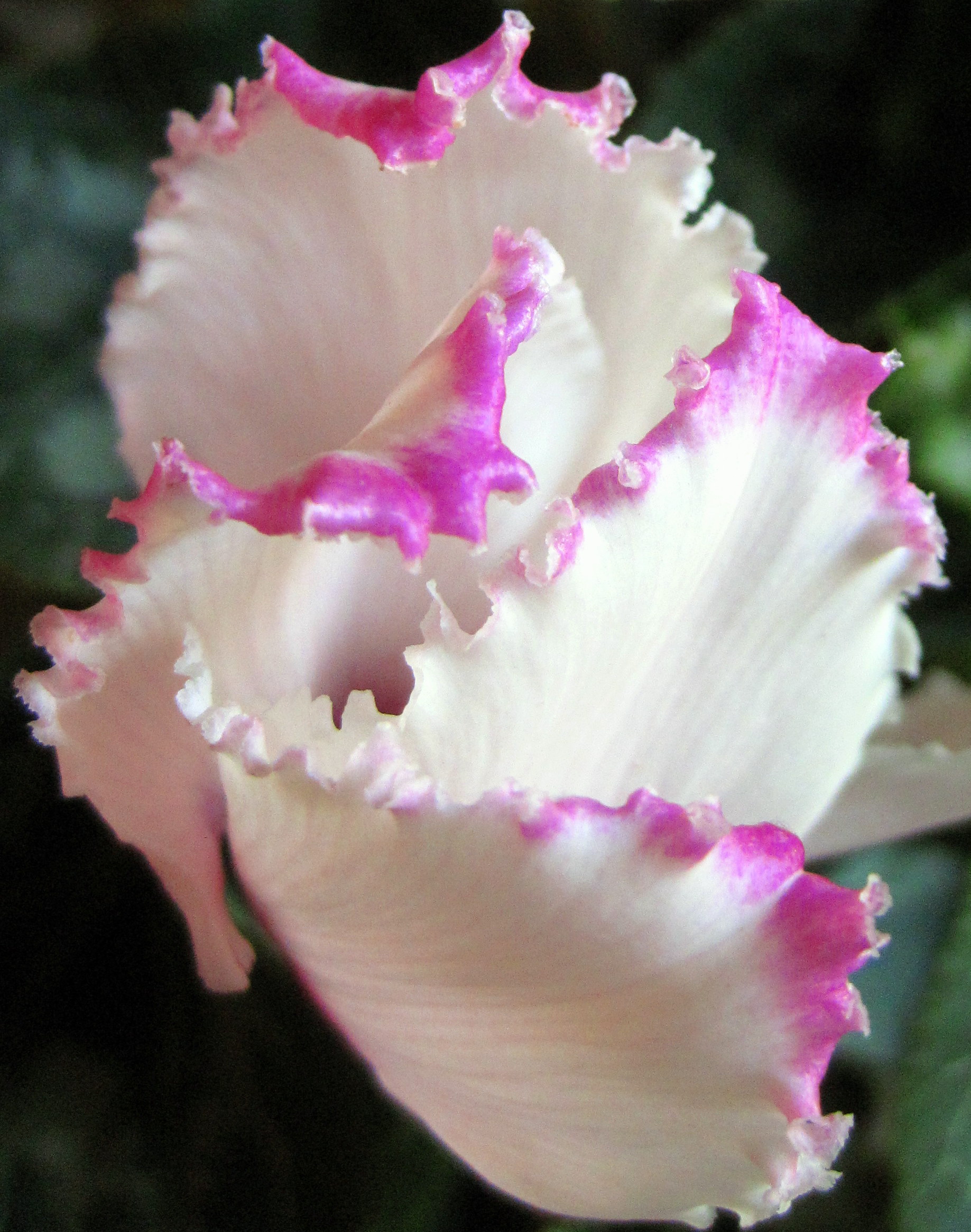 May 20, 2011 Frilly. This is a picture of a bloom on a cyclamen plant — a very unique and pretty flower. Share on: Click to share on Facebook (Opens in new window) Facebook Click to share on X (Opens in new window) X Click to share on Pinterest (Opens in new window) Pinterest More Click to share on Tumblr (Opens in new window) Tumblr Click to email a link to a friend (Opens in new window) Email Click to share on Reddit (Opens in new window) Reddit Like Loading... Related