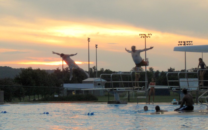 We were treated to an awesome aerial diving exhibition (..competition?…) by Monte and Dan. This is one shot of many. Gotta love the height, form, synchronization and all out gusto of this one.