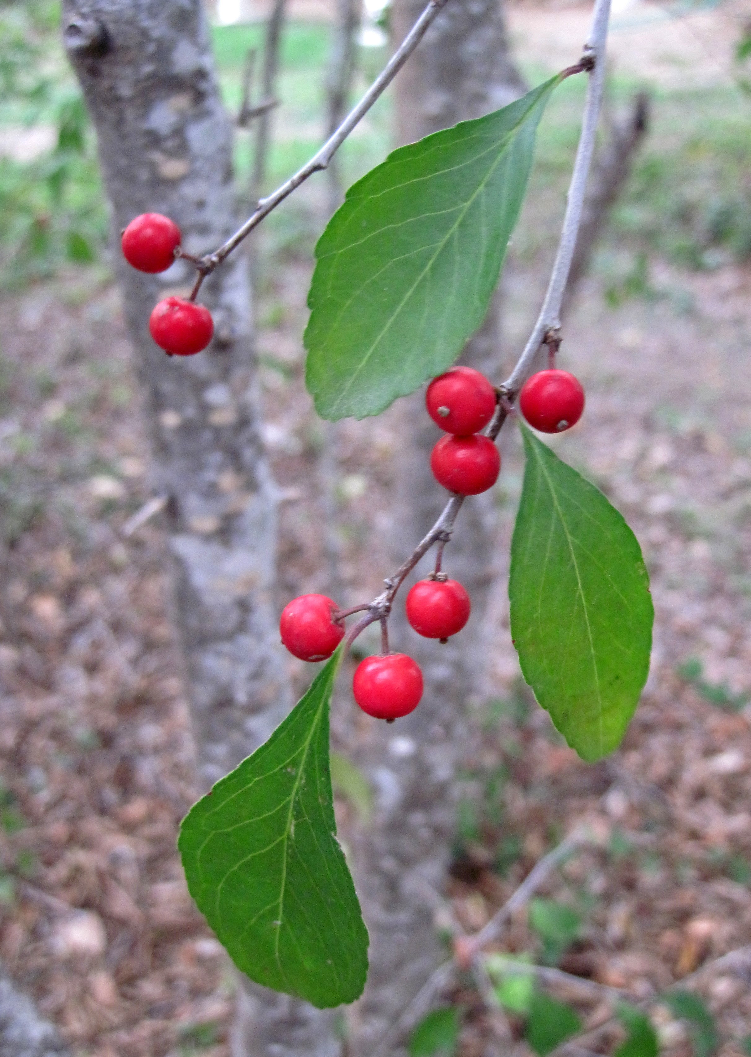 As I was walking through the back the red berries and green leaves caught my eye. I think this is a yaupon holly. Very festive!