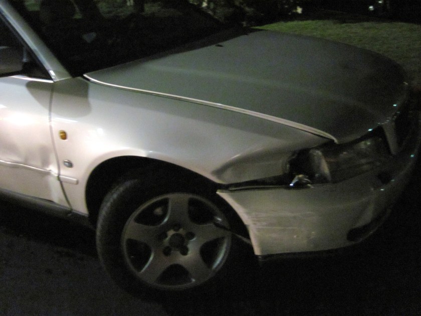 I was a bit shaken from the accident.  Ever so thankful that my guardian angel is still on duty.  And sad to have to say good bye to my dear Audi companion of 15 years.