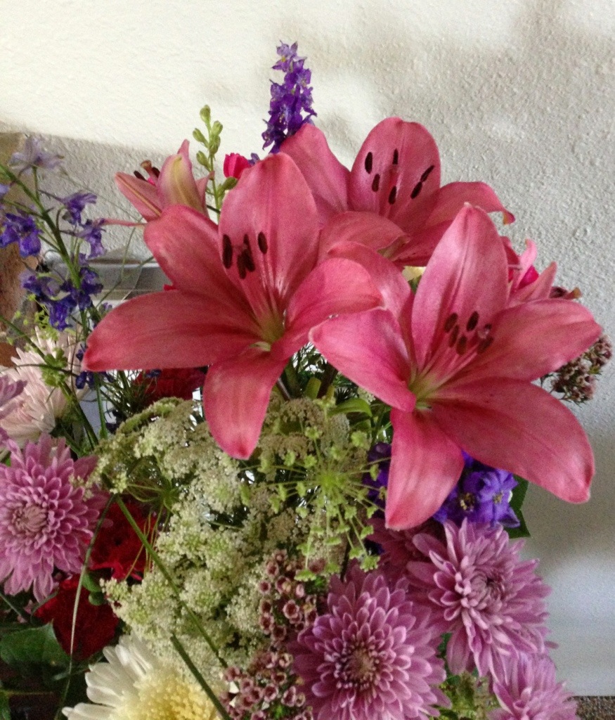 This morning these lilies from Mother’s Day were still closed buds. Tonight, voila! Very pretty.