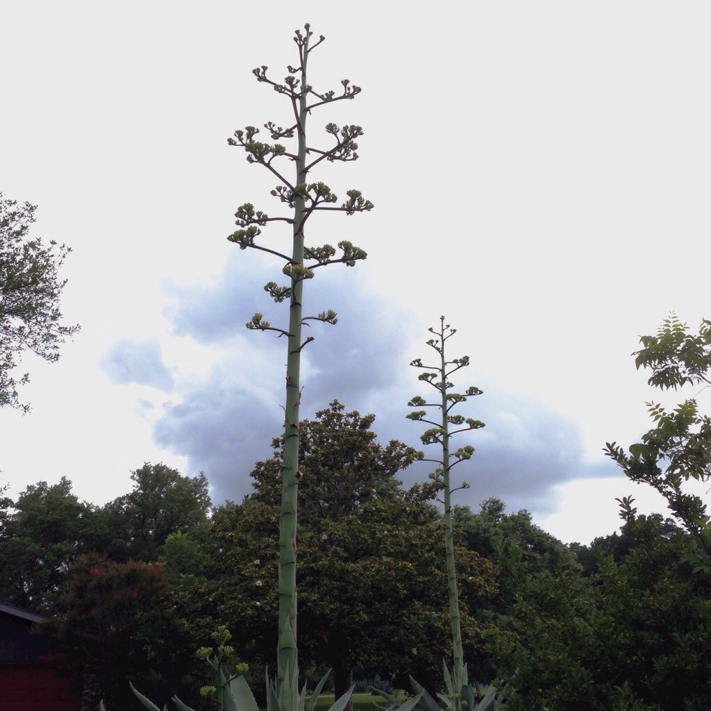 Drove by a house today that has a pair of majestic century plants going into bloom, one on either side of their driveway.