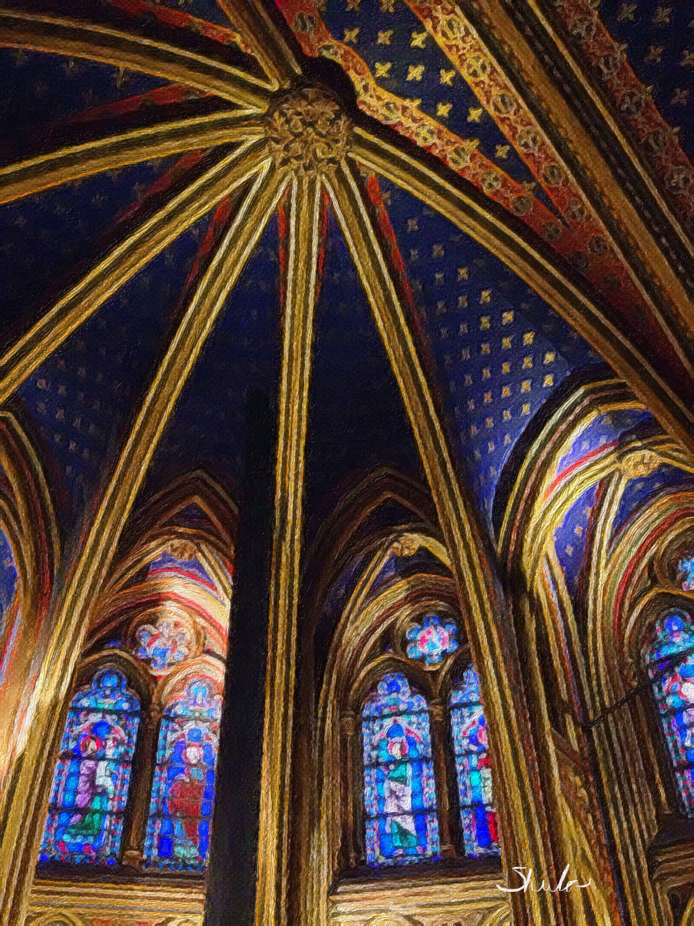 These are three shots I took in different cathedrals on my birthday trip to France, with a little post-processing with Brushstroke.