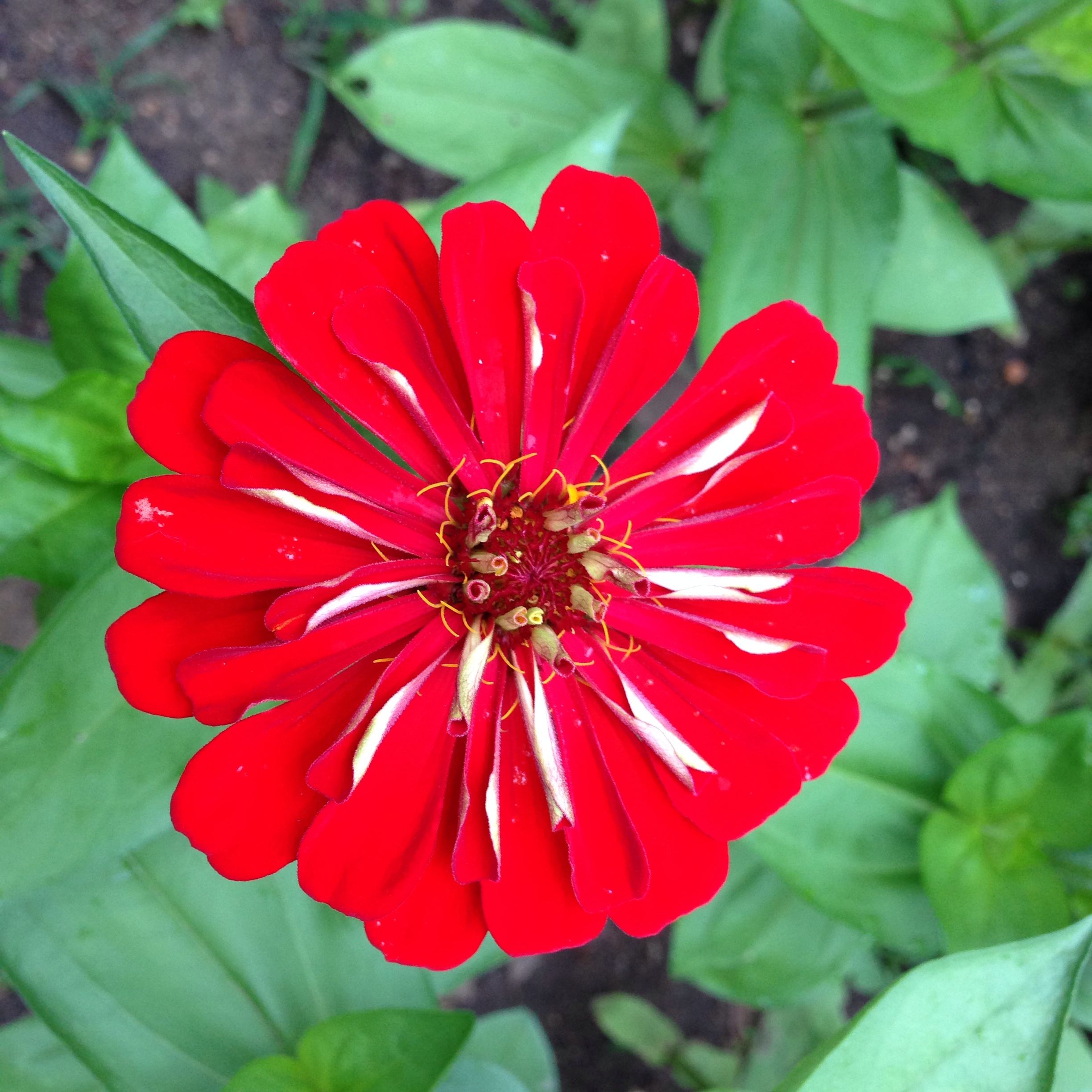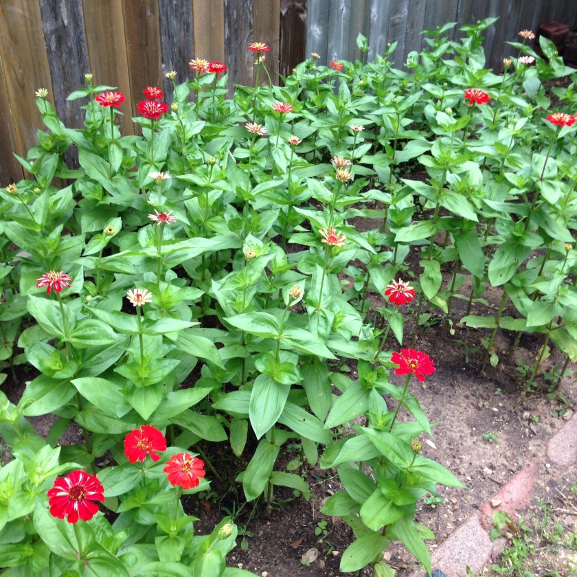 Last fall we visited Wildseed Farms on our way home from a trip to Fredericksburg. We picked up some zinnia seeds. We have a patch or two every year, but they always tend to be shades of fuschia, orange or yellow. Monte was looking for something more vibrant so he chose seed for red zinnias and planted them this spring.