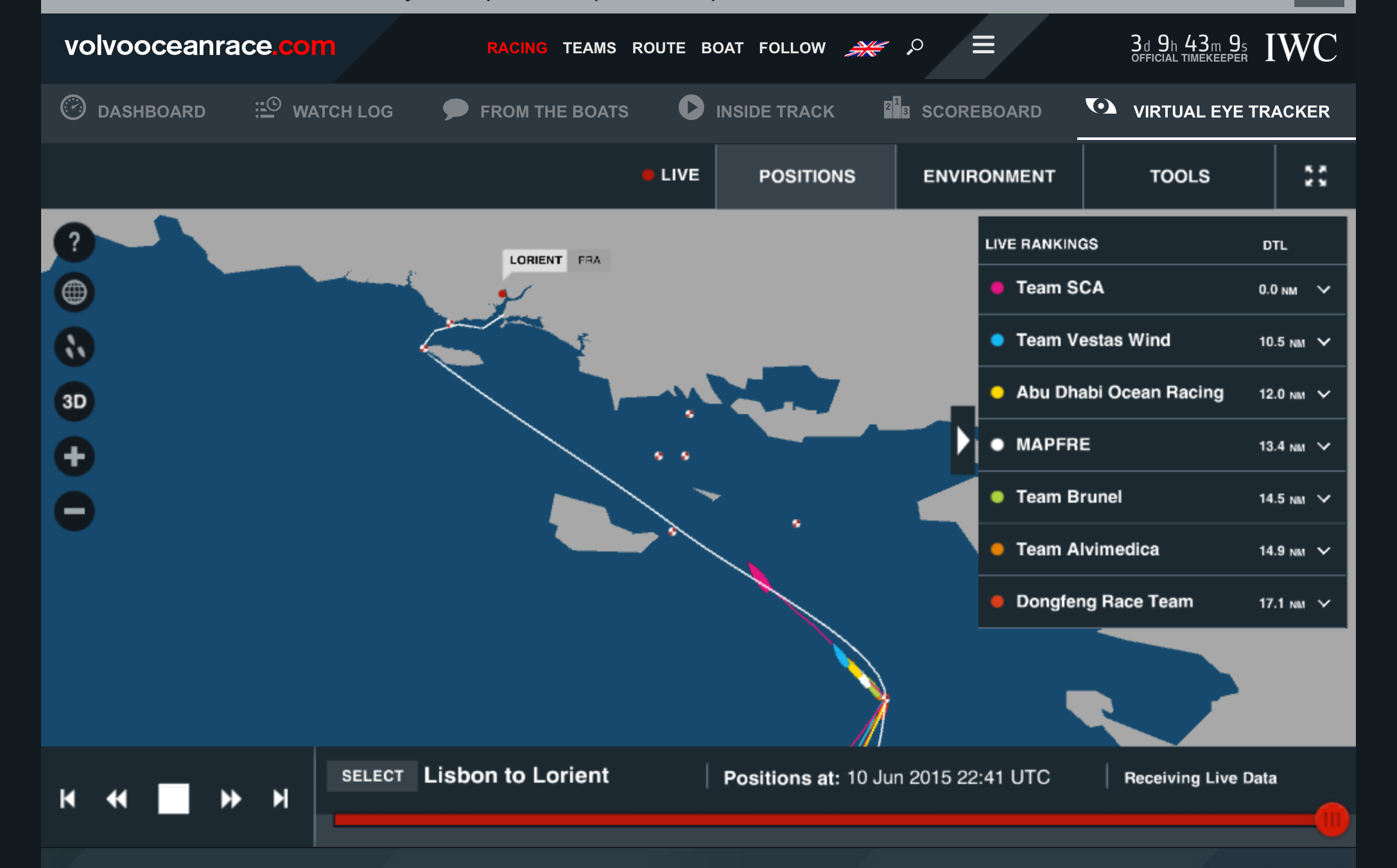 I’ve been closely following the around-the-world sailing race, the Volvo Ocean Race, since it started back in October of last year. Seven boats/teams started in Alicante, Spain, and have been sailing individual legs from one port to the next over the course of these last 8 months. They have circumnavigated the globe and are driving to the end, later this month. Tonight they will finish leg 8 – which started in Lisbon, Portugal, ending in Lorient, France. One of the teams is an all-female crew, on-board the magenta Team SCA boat. They have competed well, but have not yet won a leg. Tonight they are in the brink of winning leg 8, and I am so rooting for them. Just a little over 40 nm to go, and they are still leading the pack by 10nm and holding steady on speed. Go Team SCA!!!