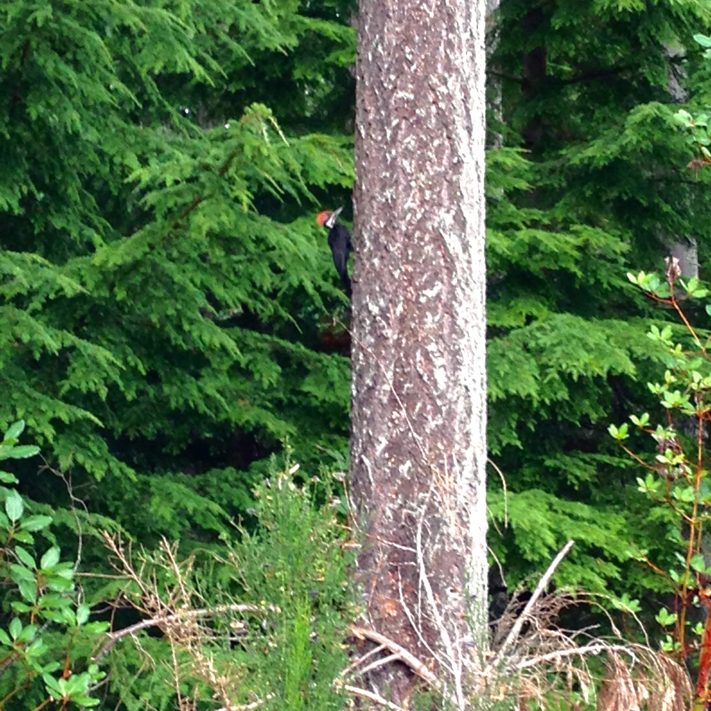 I spent the day today with Fran and kids – geocaching in what turned out to be a downpour. We got soaked but found every cache in the park. At one point we came across 3 big woodpeckers. They didn’t sit still, so I didn’t get much of a shot. But, here ’tis.