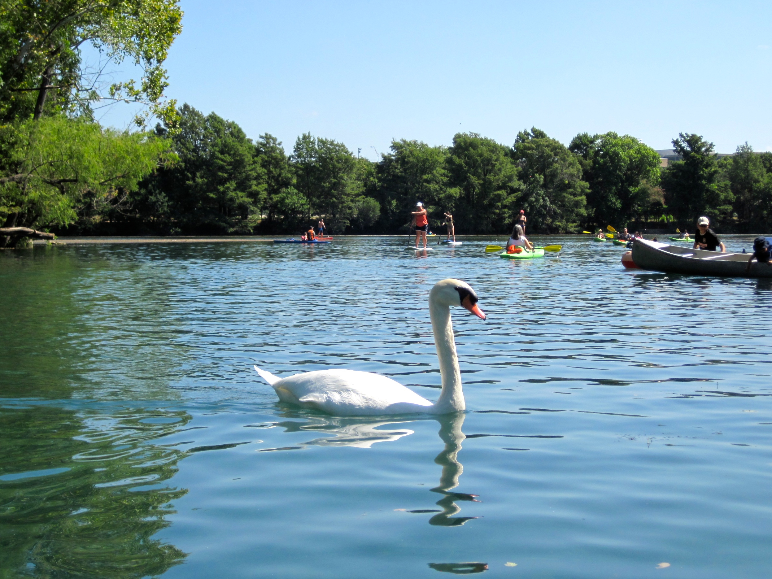 We spent Labor Day down by Zilker Park and paddling on Ladybird Lake. A friendly swan: