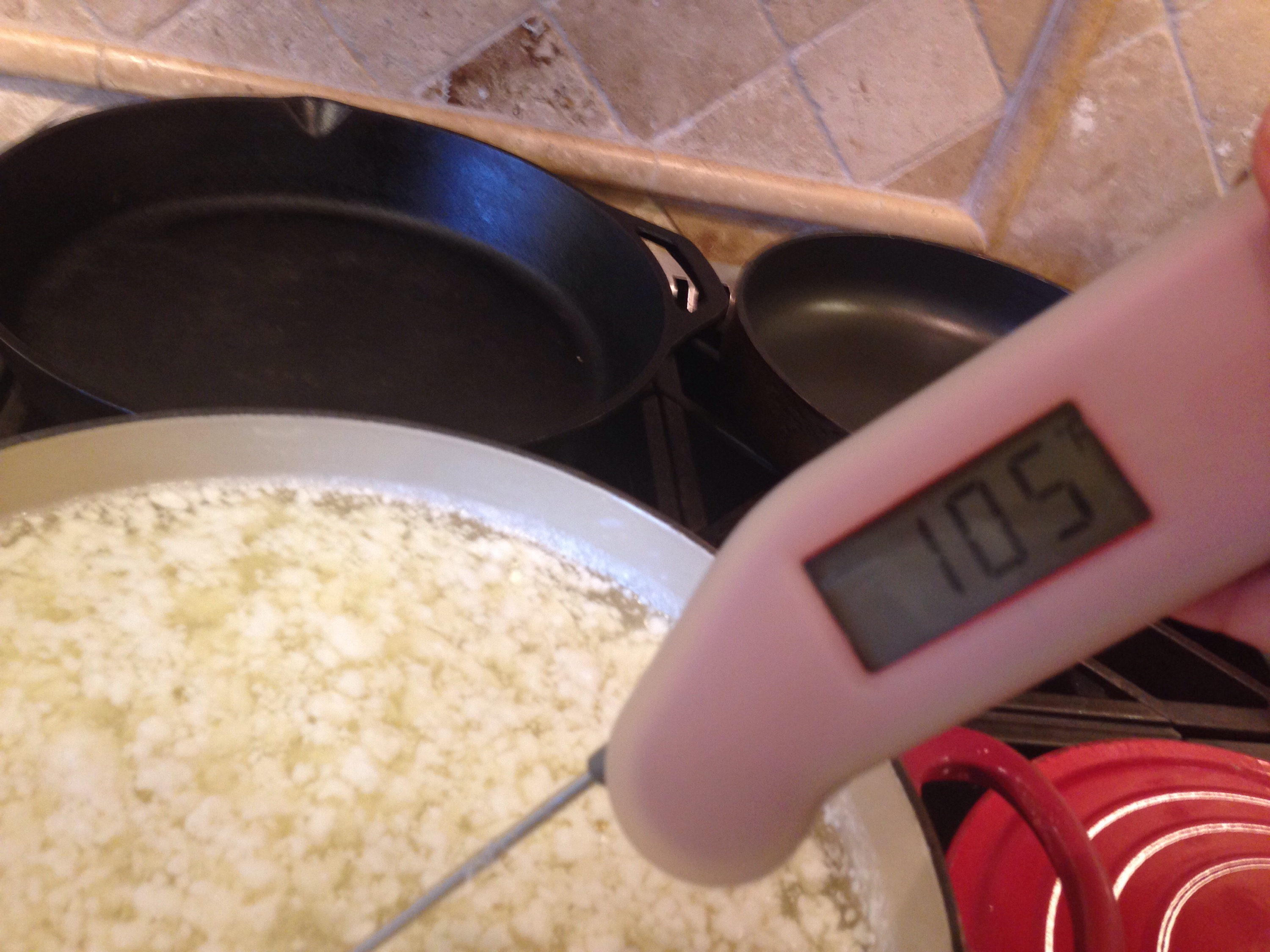 1 gallon whole milk. Homogenized but NOT Ultra High Pasteurized (UHP) – another no-no. I used HEB-brand whole milk, and I will again.