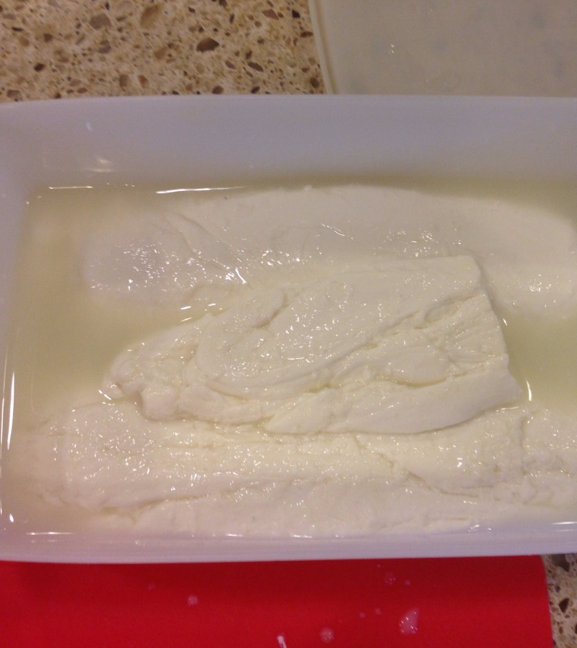 And then I put in a container with part whey liquid / part water and covered in the fridge.