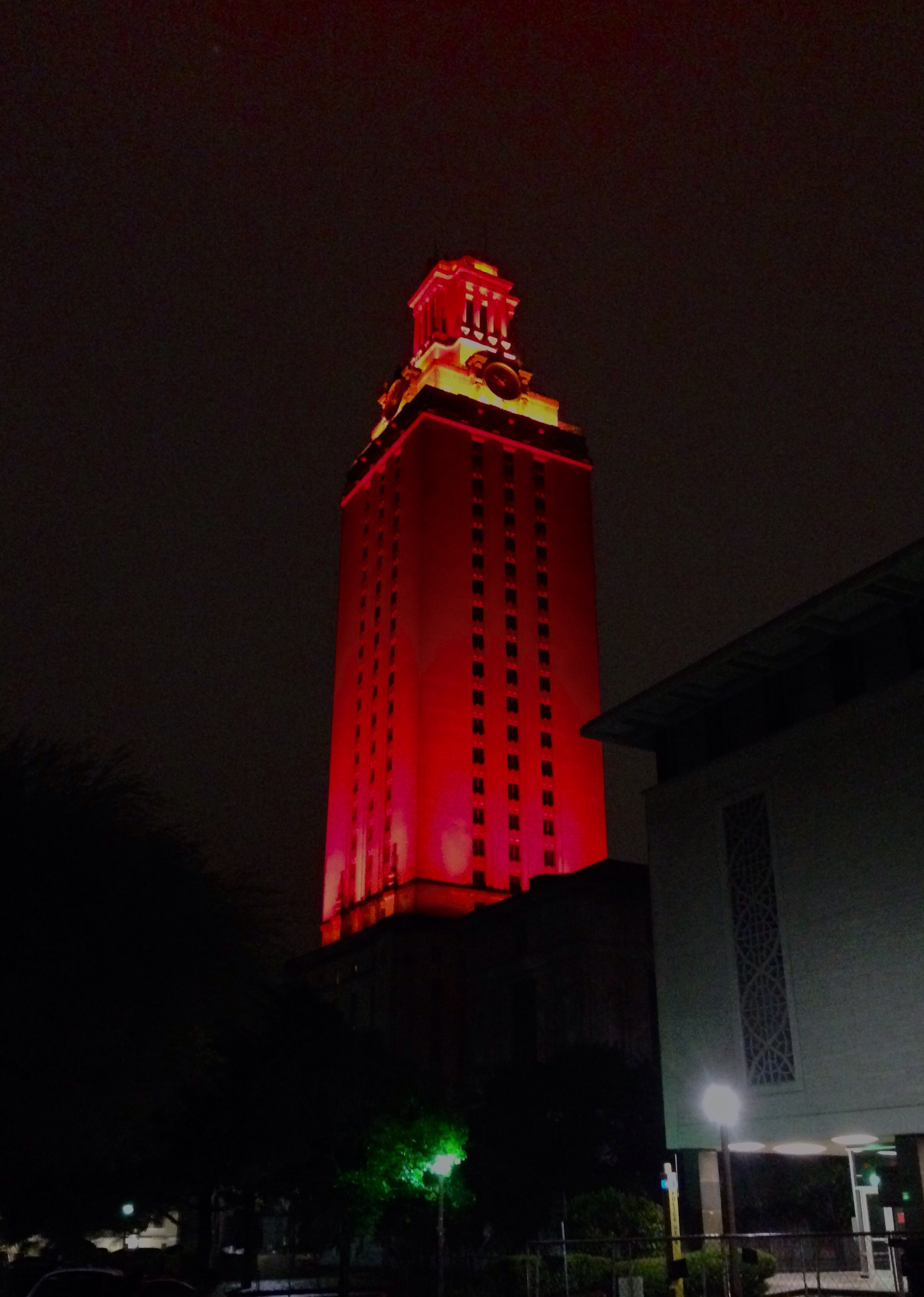 By the way, if you ever want to know what the occasion is for a lit up tower, checkout this link. And a background on the university tradition of lighting the tower here.