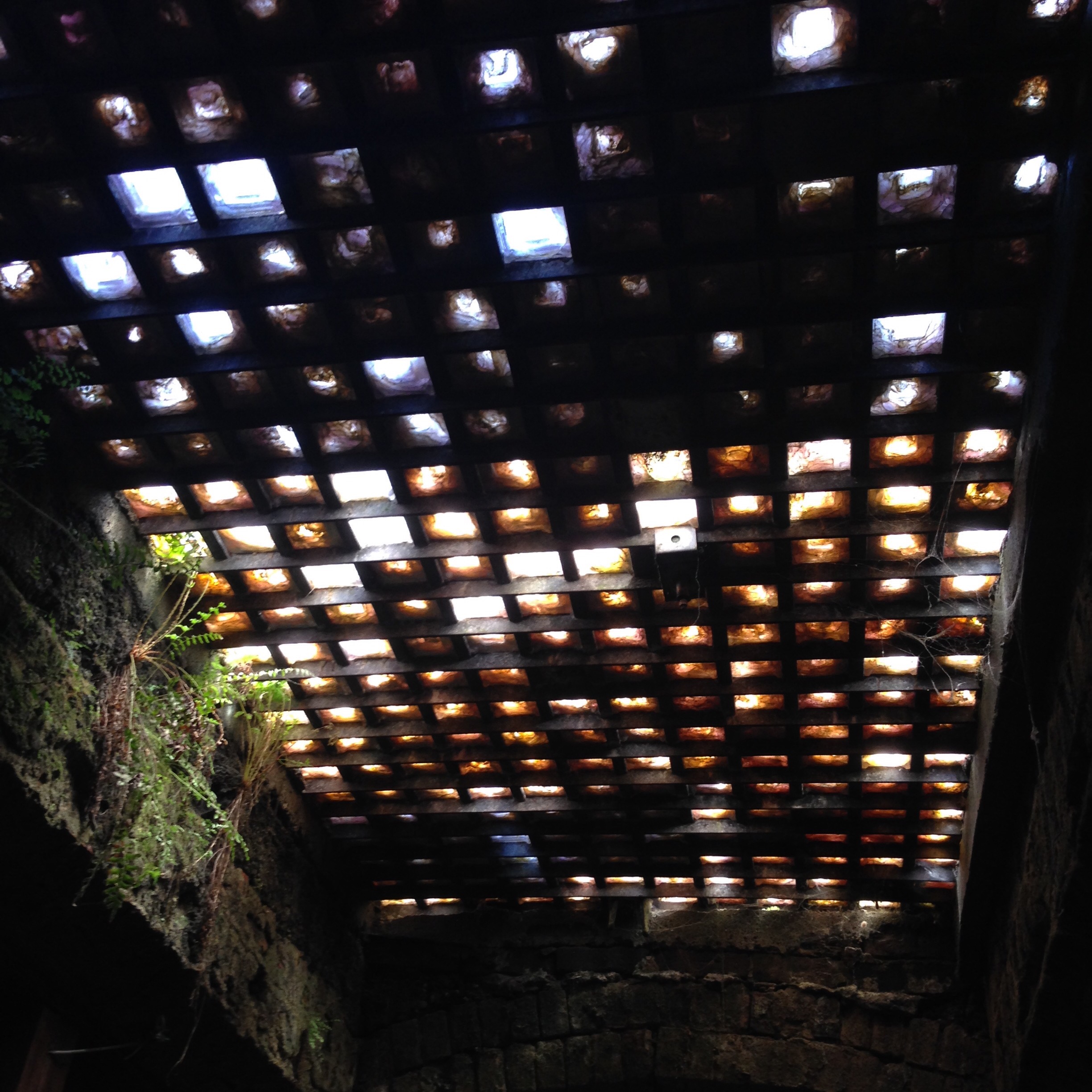 Looking up through a glass sidewalk in Pioneer Square from the Seattle Underground.