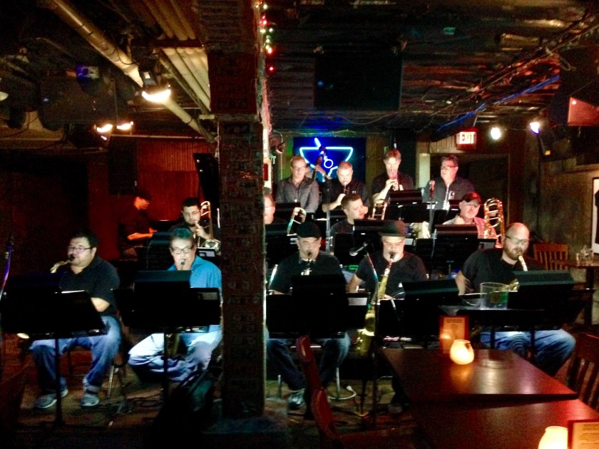 I met some girlfriends downtown last night to listen to a band at The Elephant Room – Kris Kimura’s Wasabi Grande Big, big band. Now, that’s a big band!