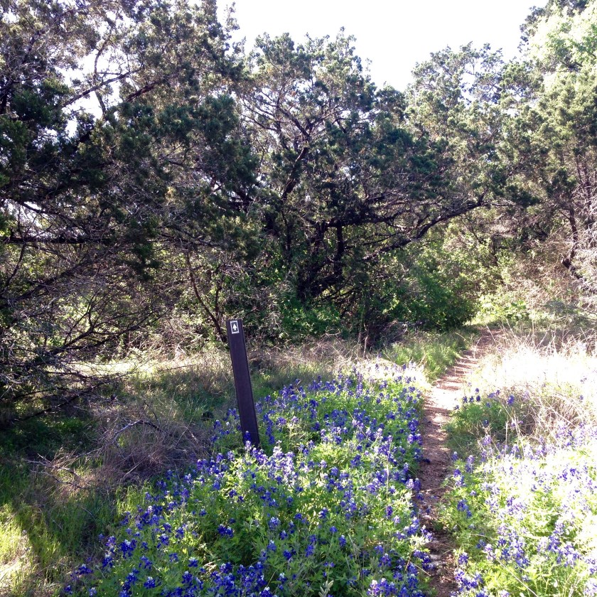 I discovered a lovely park, right off Loop 360 and Spicewood Springs Road. The trail head for the Irving and Hazeline Smith Memorial Trail is on the northwest corner of the intersection. You can park right nearby. It’s an easy, flat, 1.5 mile loop through woods, grassland and near the creek. No dogs permitted, though.