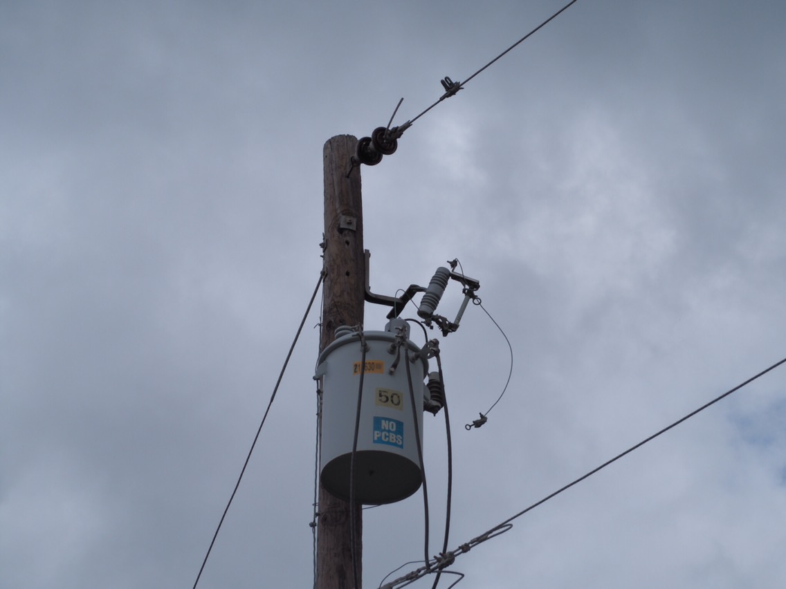I took a look at the power pole today. And…… I see that the transformer is not hooked up to the transmission line. At all.