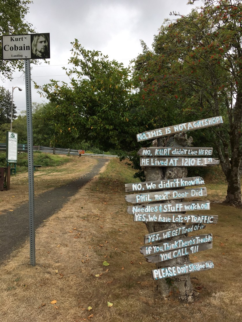 Along the way, we stopped in Aberdeen, home of Kurt Cobain, former frontman of Nirvana. We stopped at a modest but touching memorial to him.