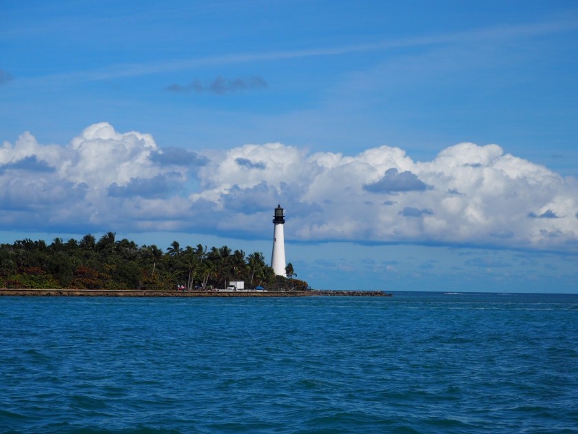 We had to decide whether to stay a couple more nights anchored off Key Largo, or make a longer-than-usual run up to Biscayne Bay to anchor and find shelter for the big cold front headed our way. We decided to head for Miami. We wanted to anchor in the tiny but well-protected No Name Harbor at Cape Florida, but it was pretty packed. So we anchored outside and weathered the big blow overnight and the following day or two.