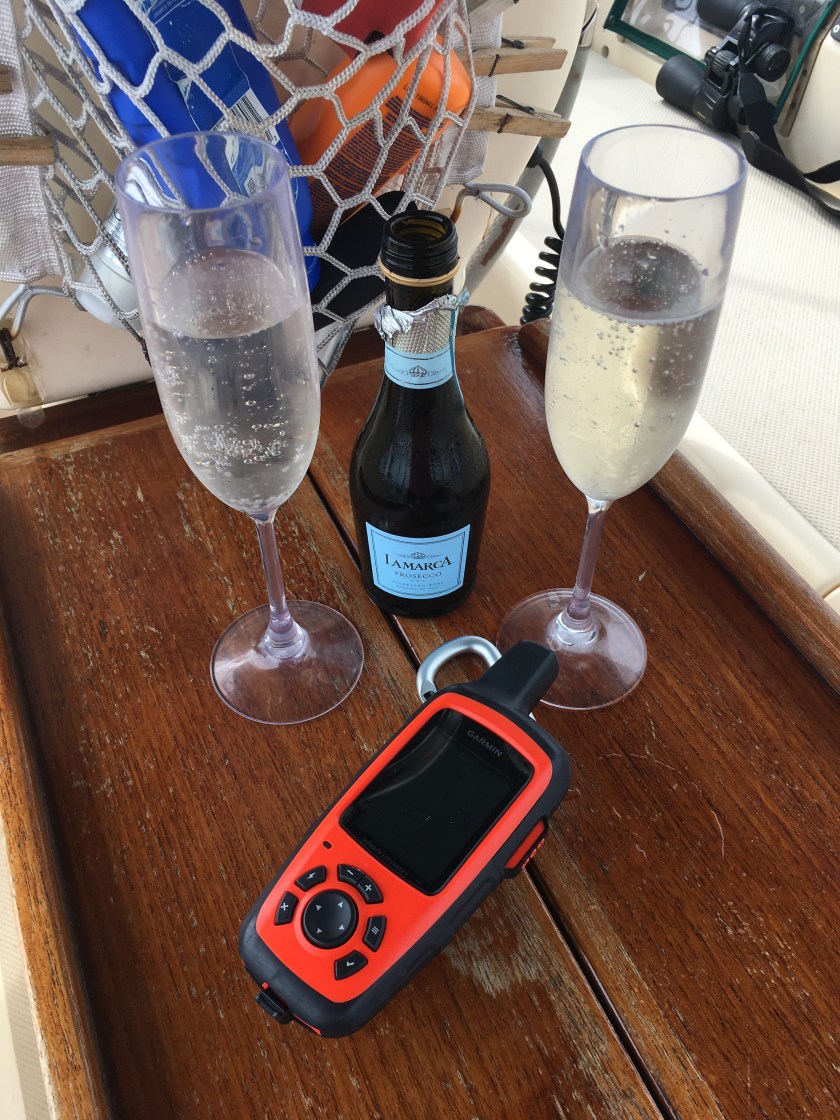 We celebrated Day 1 after we anchored with a glass of bubbles.