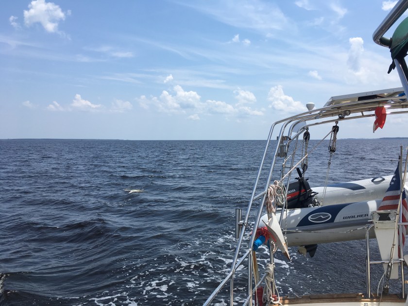 Then we had to drop sails to motor through a very straight, but pretty, land cut. For the most part, today had us mostly crossing wide, open rivers like the Neuse, Pungo, and Pamlico Rivers.