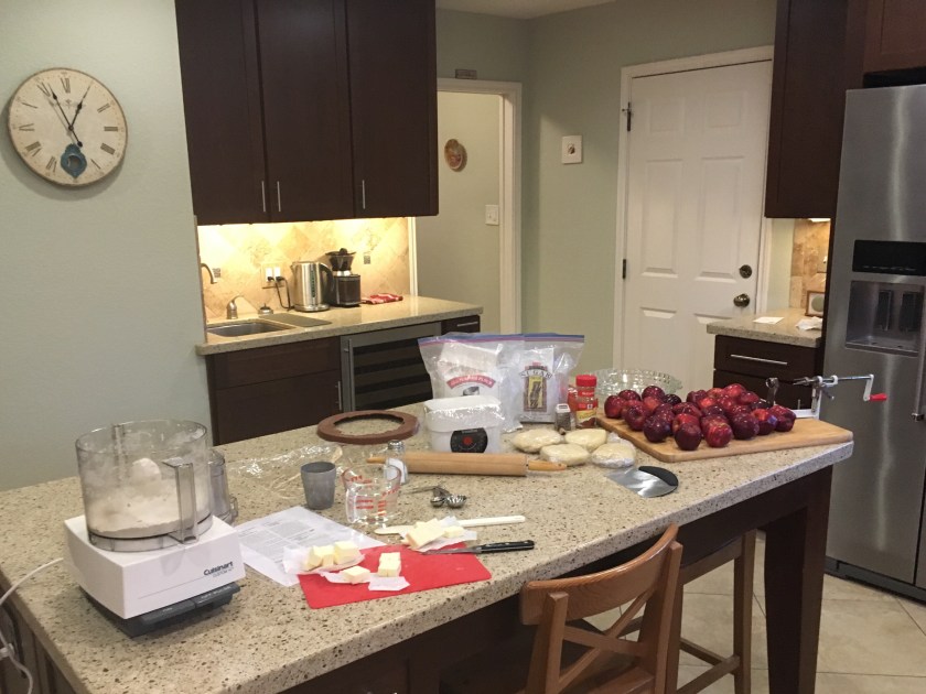 Today was a baking day. I signed up to bring two pies to Bill & Yvonne’s house tomorrow. They are in the seventh year of organizing and executing a massive community effort to cook turkeys and all the fixings for Annie’s Way Thanksgiving, providing a couple thousand meals to families in the community. This year their goal is to cook over 150 turkeys tomorrow, to be packaged up and delivered for Thanksgiving Day. They call it Kyle’s Challenge, which the Austin American Statesman featured a story on here. It’s quite a commitment.