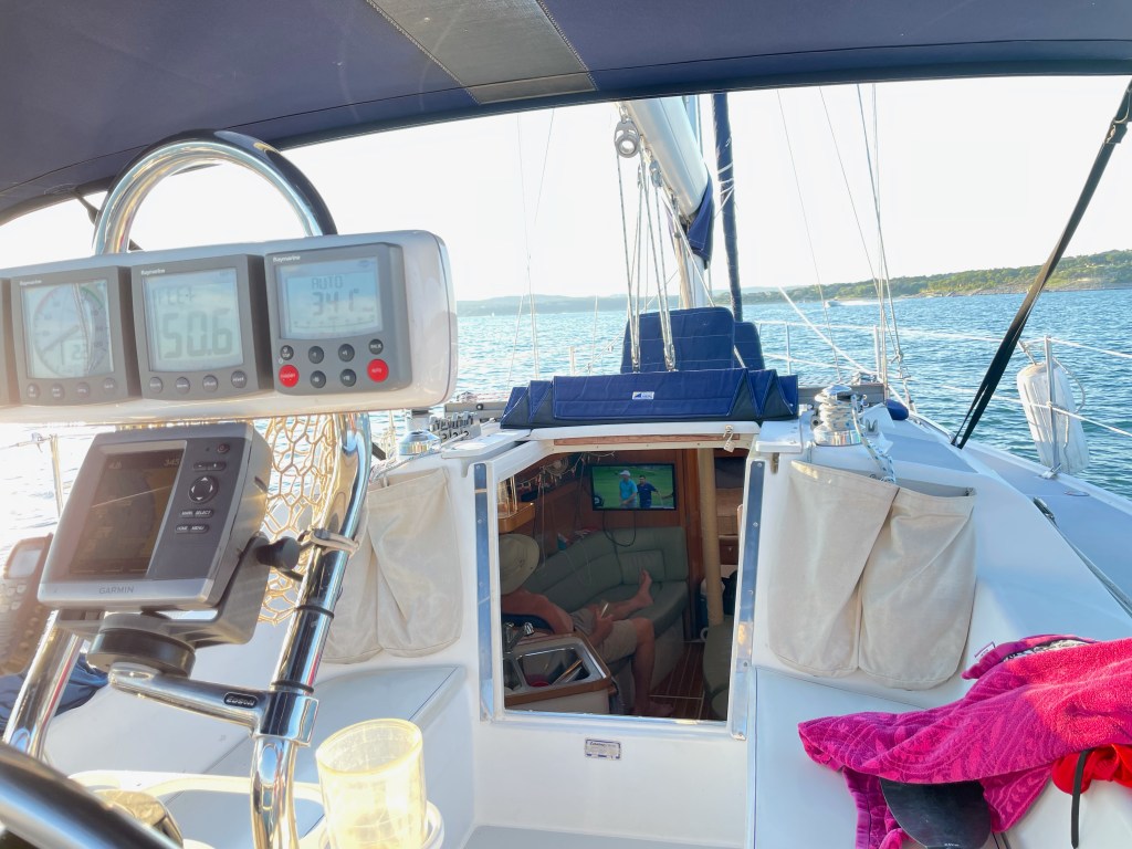 We’re enjoying the boat. The lake and our favorite coves are busy and packed with boats, but we’ve figured out that if we head out to anchor right before sunset, the majority of people have headed home. So, we have plenty of room to anchor and enjoy a peaceful sunset.