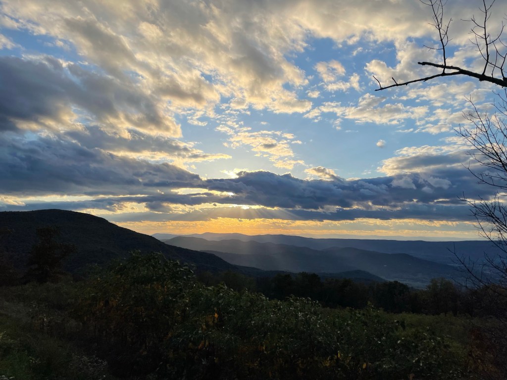 Sunday’s park was Shenandoah National Park. It was the created in 1935 amongst the Blue Ridge Mountains. The winding, two-lane Skyline Drive takes you through the park along the ridge-tops with dozens of overlook parking areas along it. We drove it for 60 miles. The trees were turning red and gold. It will be even more stunning in a week or two.
