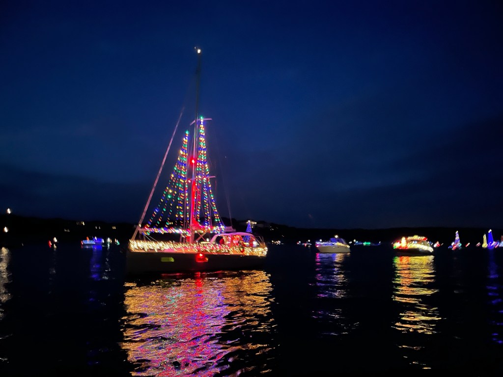 Last night we took a boatload out to watch the Christmas boat parade. B-dock was well represented. The weather was great. Afterwards there was caroling around the slips.