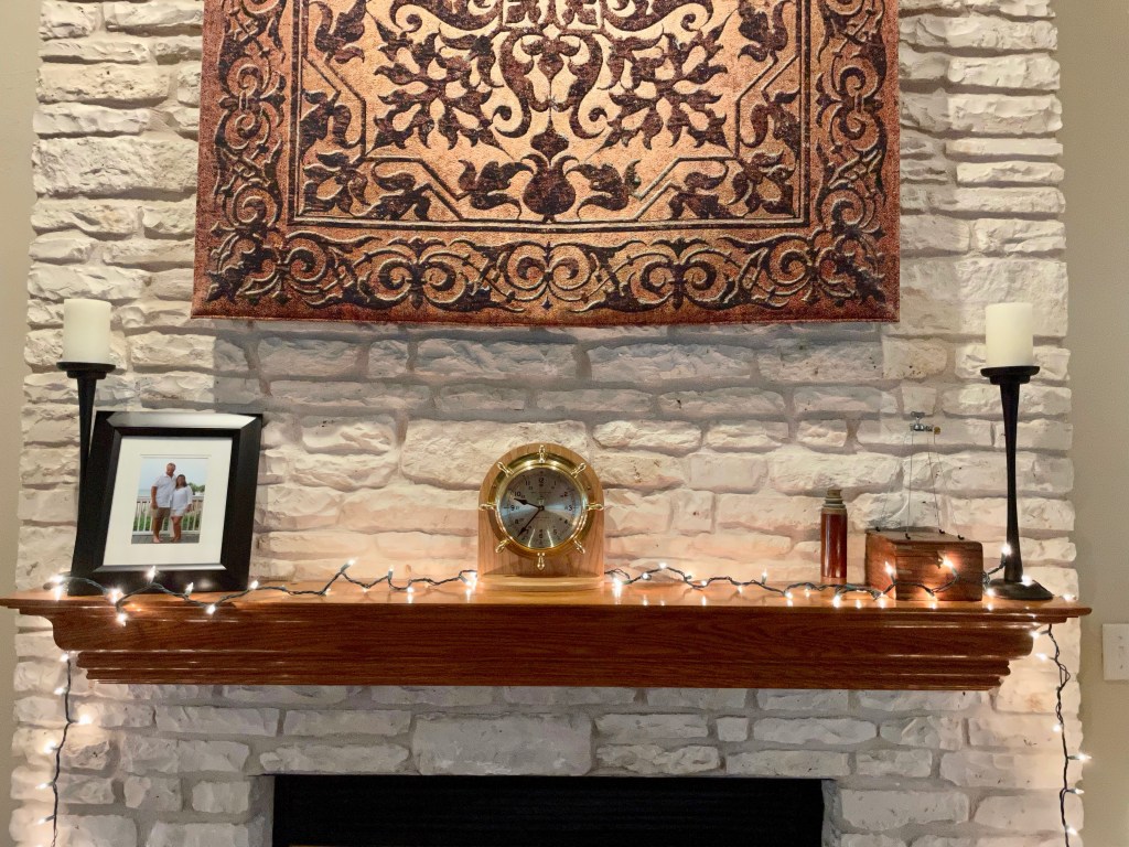 Patrick and Nga sent us a beautiful ship’s clock that they found. Monte made a stand for it out of white oak and it now graces the mantle on our fireplace in the great room. I love it!