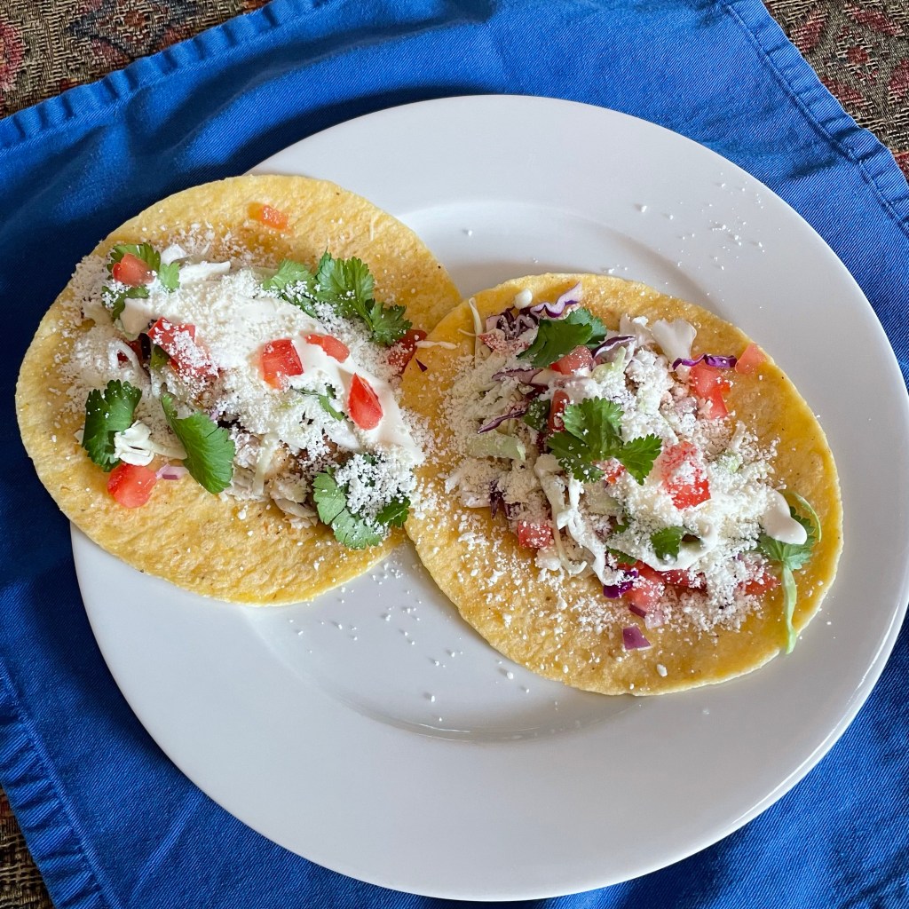 I’ve been craving fish tacos for a week. Last night the universe aligned and I finally made a batch. They’re so delicious. Here’s a link to the recipe I start with. Or you can just google ‘best fish tacos’ and it’s the top result. They’re that good. The sauce is amazing. And the cotija cheese makes them muy auténtico. I like to use mixed corn/flour tortillas, which Doray turned me on to years ago. They’re sold by H‑E‑B here in Texas as Mixla tortillas. They tend to hold together better than plain corn tortillas.