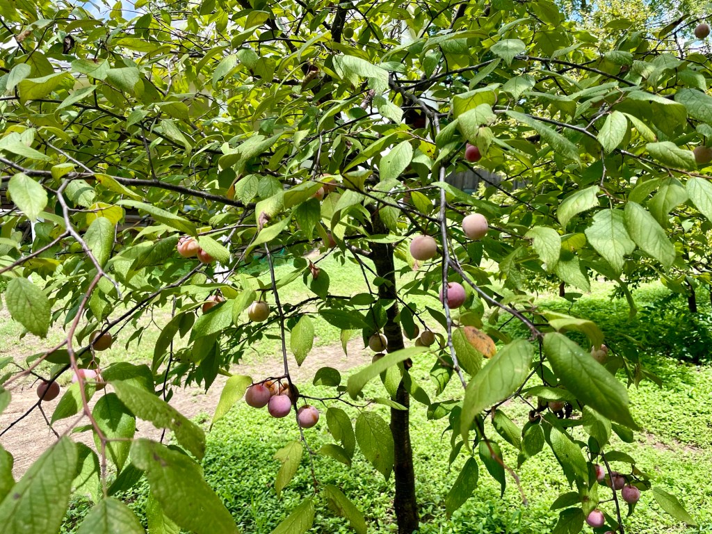 Several years ago we planted a few new trees in the way back. One is a Mexican plum (link here). It has established itself in the face of drought and recent hard freezes. I was excited to see that this year it has fruit on it!