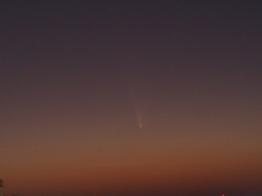 This week, a comet is gracing us with its faint presence. It is low on the horizon after sunset. I was finally able to spot it through binoculars and grabbed a less-than-stellar shot of it from my Olympus camera with a long exposure on a tripod.