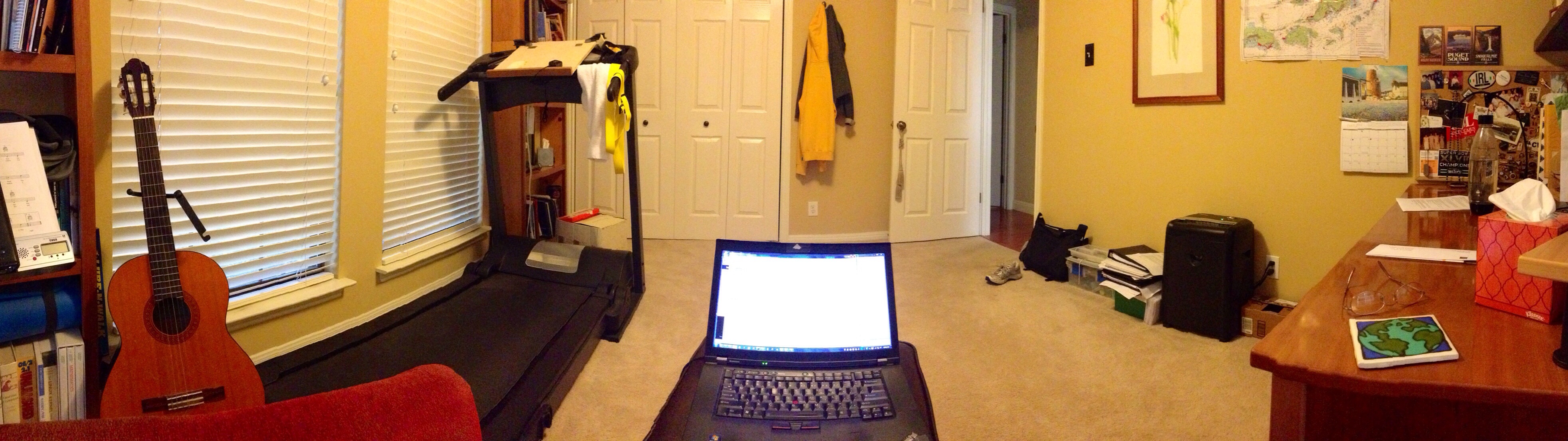 Now that I’ve found panorama mode on the iPhone, I’m going to play around with it. I am not yet sure of the optimal settings to display panoramas on wordpress.com wrt image size and resolution, but I’ll have to experiment to see what my options are. Here is my view this Monday morning. Well, my everyday view, really. Here goes:
