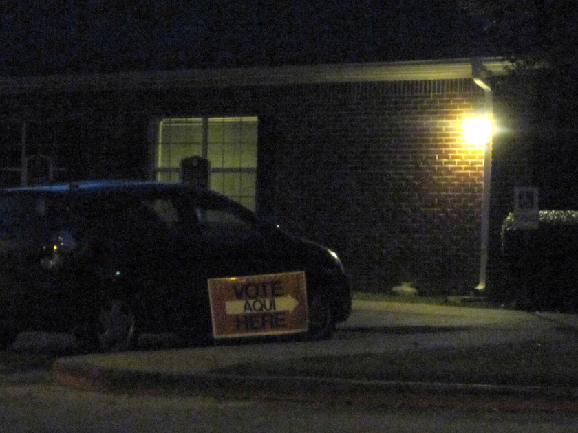Texas early voting ended on Friday. I attempted several times to dash over to one of the early voting places last week but each time was greeted with a wait in line longer than I had time to spare. My mission today was to get it over first thing, since I had a day packed with back to back meetings starting at 7:30. The polls opened at 7:00. So, it was now or never.