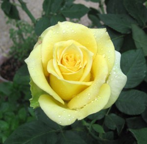 My aunt is a wonderful gardener and she gave us a tour of her lovely backyard. This is a picture of one of her St. Patrick roses… it was even more beautiful in person.