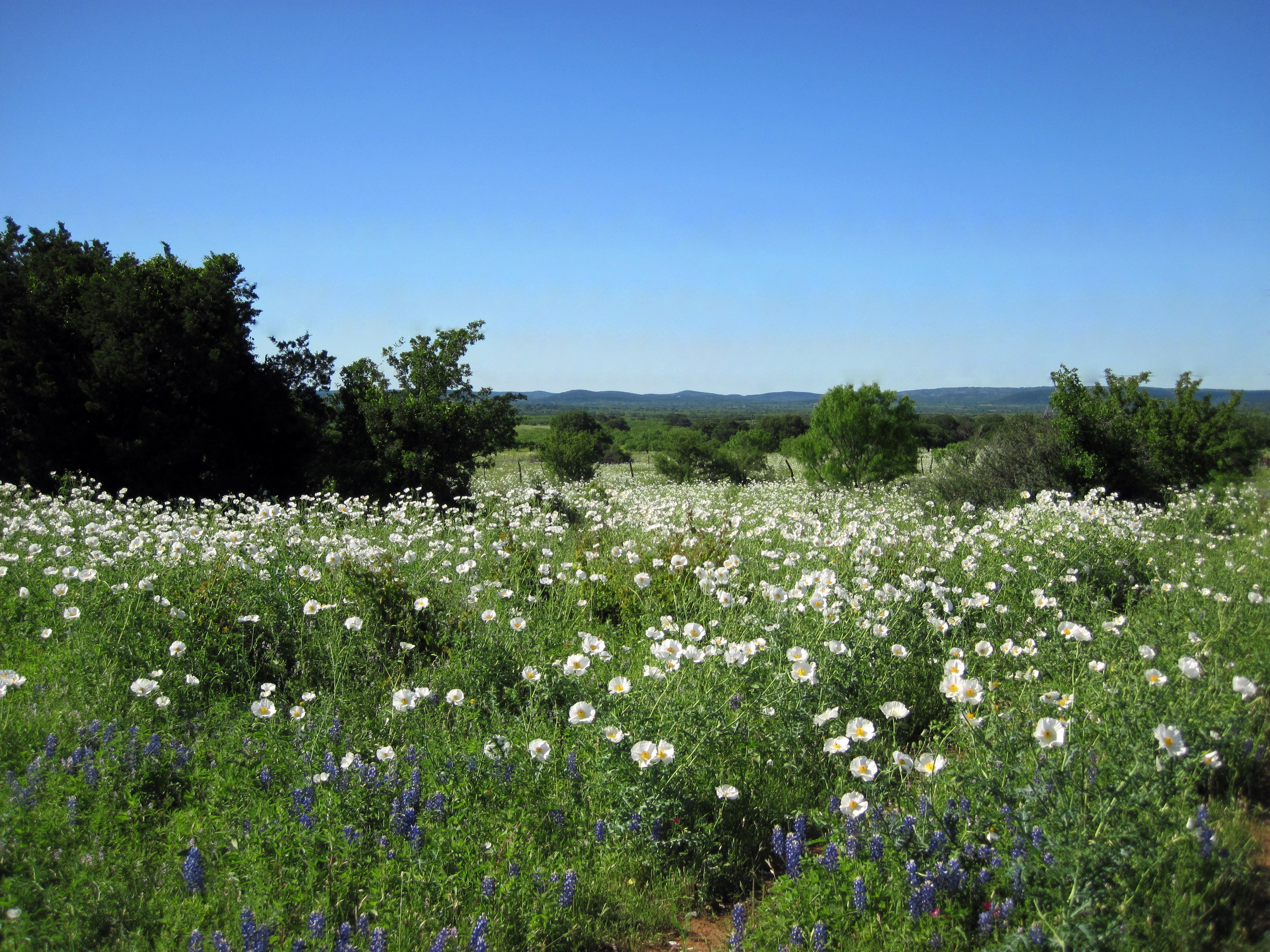 It was an absolutely gorgeous day today. We went for a long drive past Johnson City through the Willow City Loop to see what was left of the wildflowers. The bluebonnets are on the decline, but many others are taking stage against a hill country backdrop. This field was full of white prickly poppies.