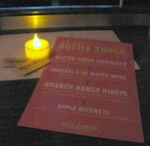 It was weird to eat food that you couldn’t really see in the dark. But the food, wines and movie were all great. Love the Alamo!