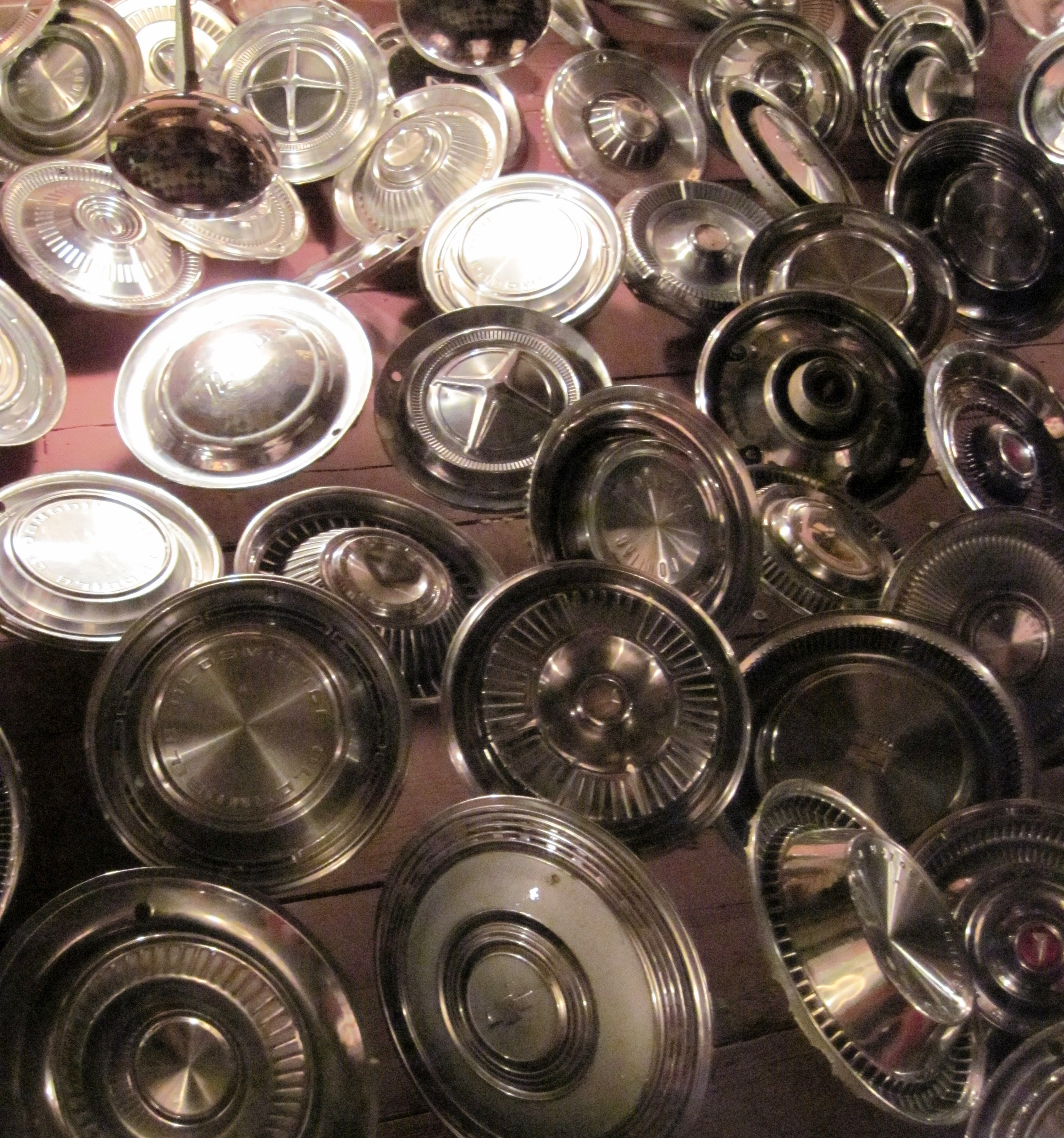 We made it to our neighborhood margarita hole for dinner tonight — timed to miss the after-work rush. This is a shot of Chuy’s hubcap ceiling. I love me some mango margs.