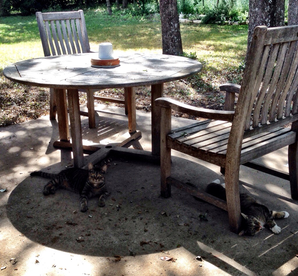 We had a great night on the lake last night. And a beautiful sail home today. We got home this afternoon to find that 2 of our neighbor’s cats have decided they want to hang with us. All the perks of owning two cats, but none of hassle. One of the cats has been hanging out in our yard for the last week or two. Today he brought his buddy.