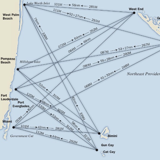 We left Miami Sunday morning at 3AM, on a course Lori set for West End on Grand Bahama Island, where we clear customs and spend one night before making our way farther east to the Ábacos.