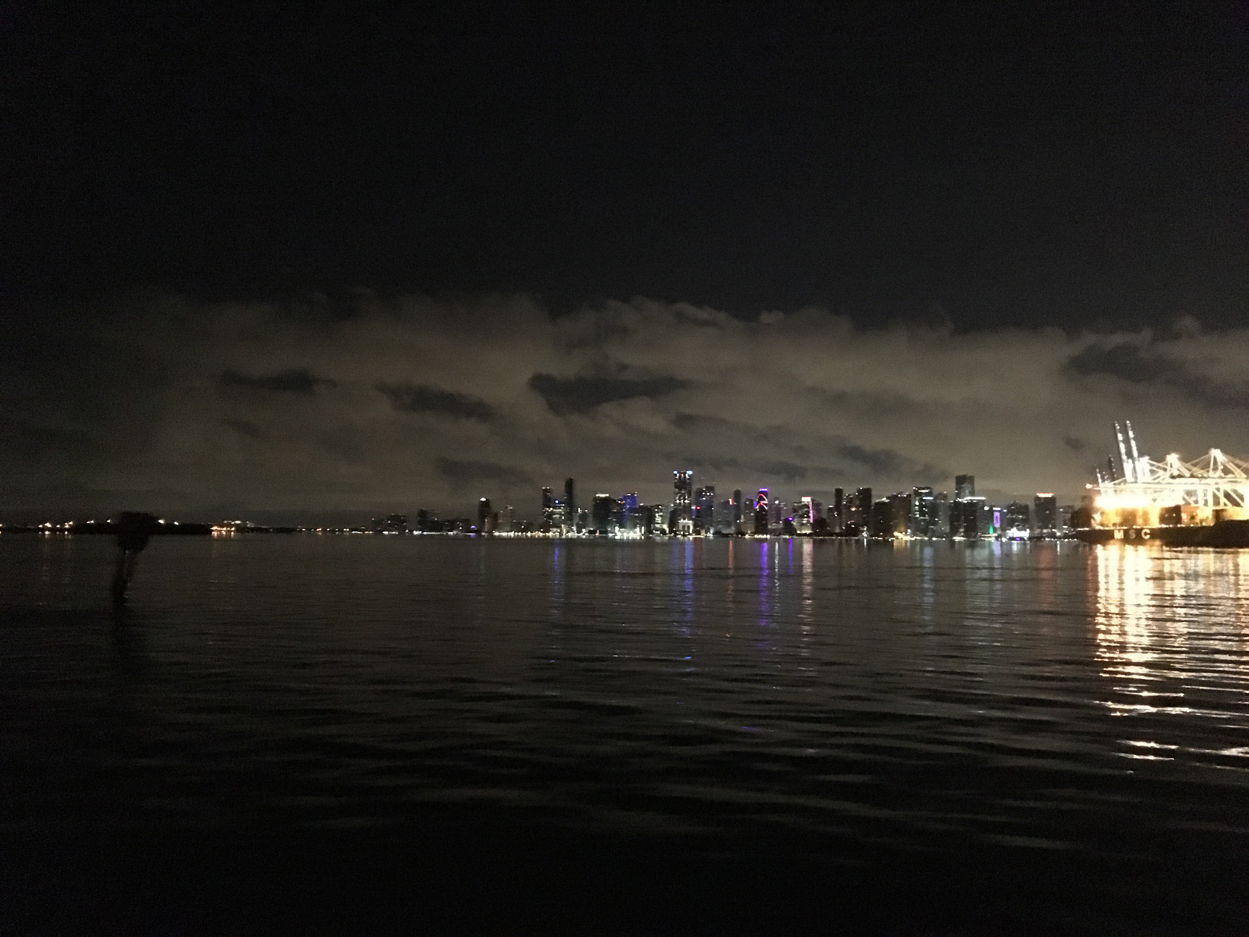 We left Miami Sunday morning at 3AM, on a course Lori set for West End on Grand Bahama Island, where we clear customs and spend one night before making our way farther east to the Ábacos.
